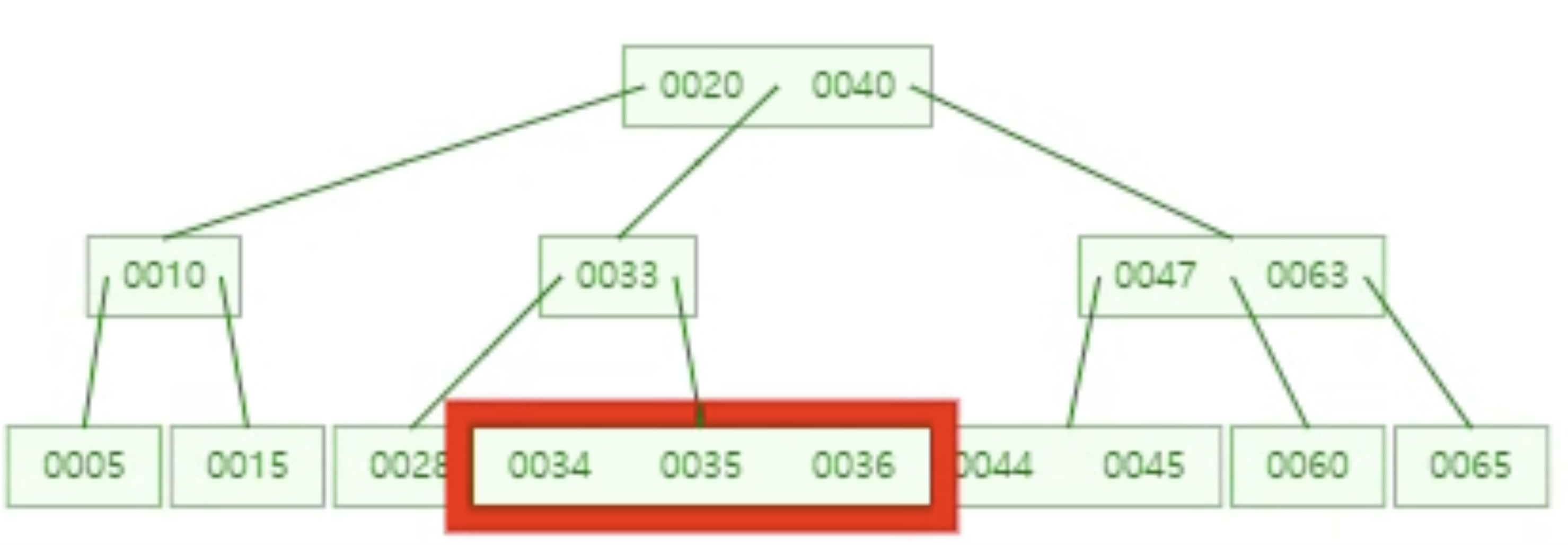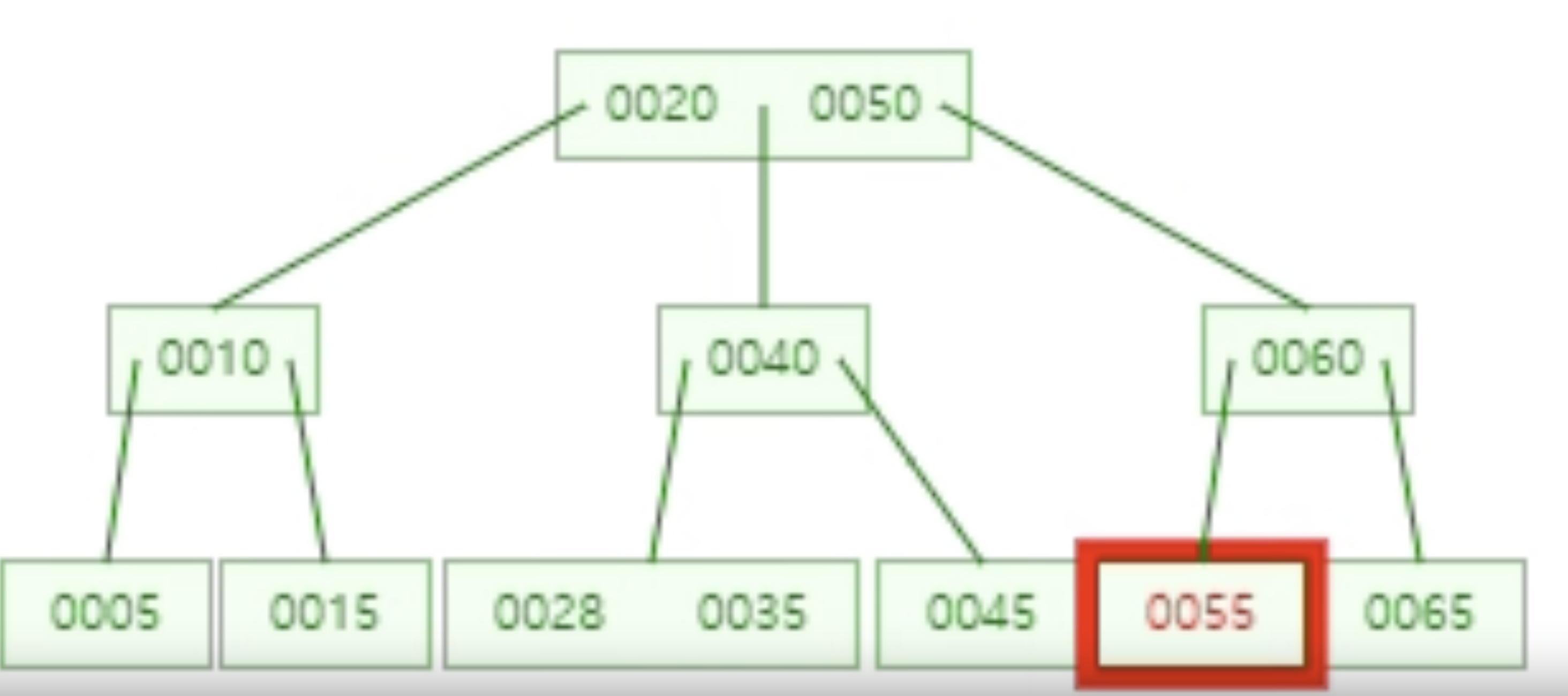 범위를 보면 40 50 사이에 적합하게 3개의 자식이 배치 되었음을 확인 할 수 있다.