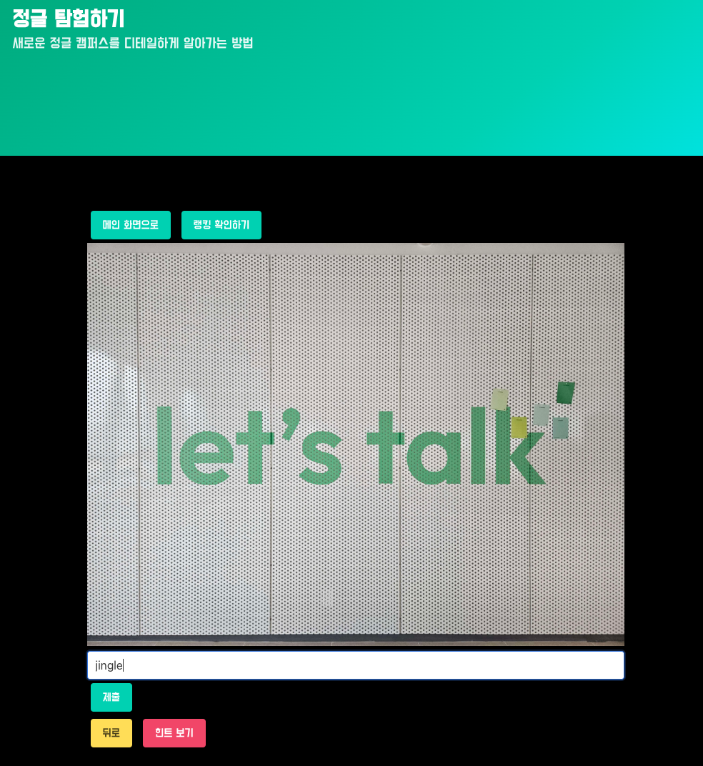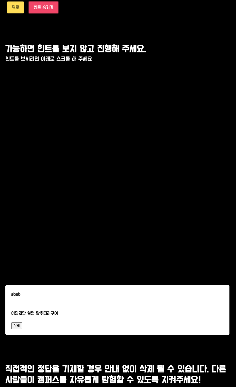 앞으로 5개월 동안 몰라서 못썼을 법한 시설은 없었으면 좋겠다는 마음에 만들어진 프로젝트입니다. 퀴즈에 알려주는 힌트를 통해 장소를 유추하고, 그곳에 정답이 적힌 코드를 확인하고 문제를 맞추어보세요.