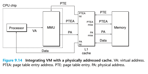 - 주목해야 할 것은, DRAM 캐시는 완전 연관 방식이기 때문에 어떤 물리 페이지든 어떤 가상 페이지를 담을 수 있다는 것이다.