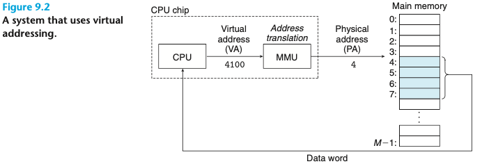 - 가상 주소 지정에서는 CPU가 메인 메모리에 접근 할 때 가상 주소를 생성하고, 이 주소는 메인 메모리에 전달되기 전에 적절한 물리주소로 변환된다.
