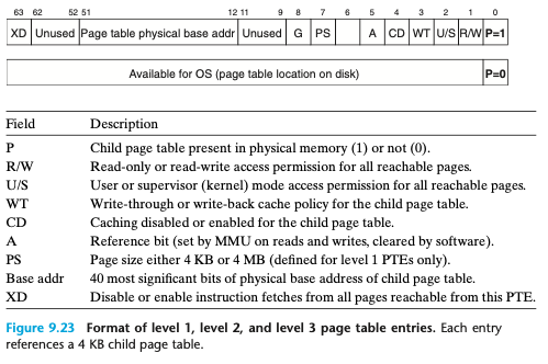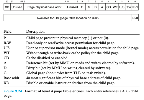 - 주소 필드는 가상 페이지가 캐시된 물리 페이지의 시작 주소를 가리킨다.