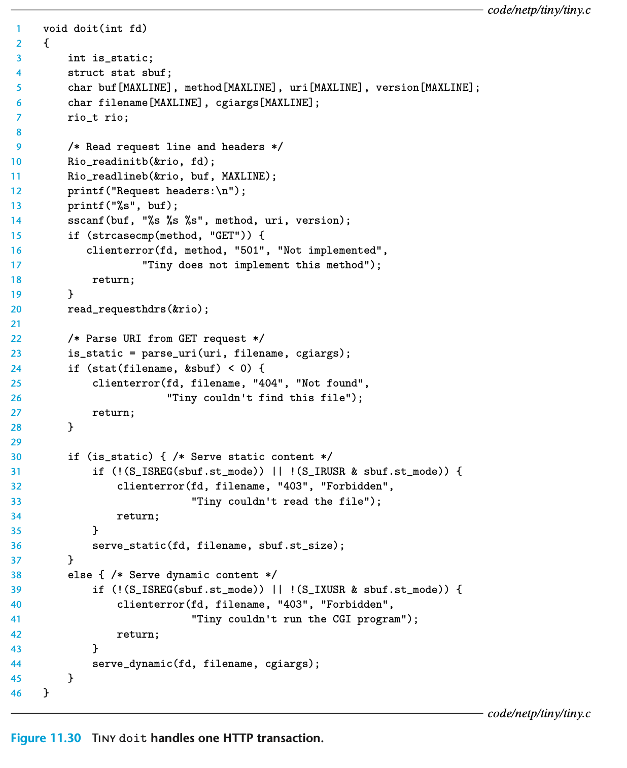 그림 11.30에 나오는 doit 함수는 한 개의 http 트랜잭션을 처리 할 수 있다.