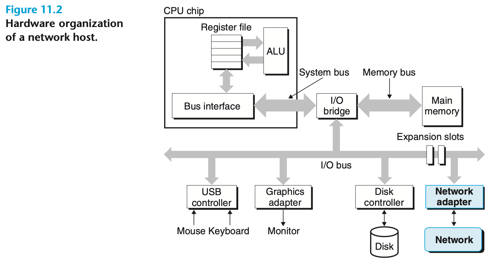 호스트에게 네트워크는 단지 데이터의 입출력(source and sink)을 담당하는 또 다른 I/O 장치일 뿐이며, 이는 그림 11.2에서와 같이 나타난다.