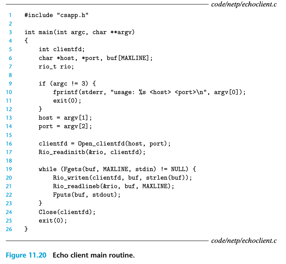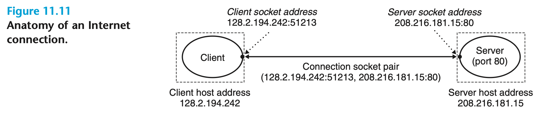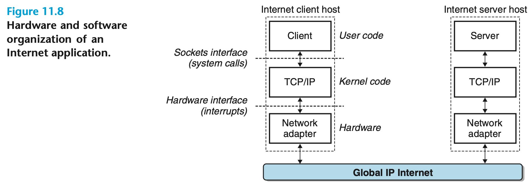 클라이언트와 서버는 대개 별개의 호스트에서 실행되며, 컴퓨터 네트워크의 하드웨어 및 소프트웨어 자원을 활용하여 서로 통신한다. 네트워크는 매우 정교한 시스템이기 때문에, 여기에서는 그 일부만 다루어 본다. 우리의 목표는 프로그래머의 관점에서 이해할 수 있는 개념적 모델을 제공하는 것이다.