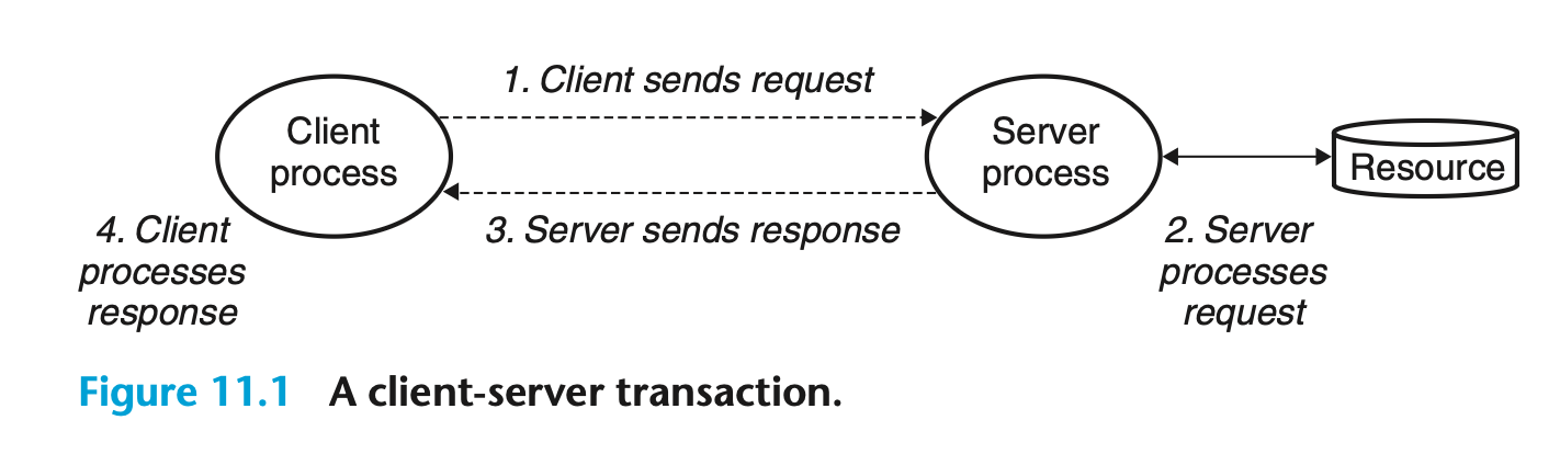 클라이언트-서버 모델의 기본 동작은 트랜잭션(그림 11.1)이다. 클라이언트-서버 트랜잭션은 네 가지 단계로 구성된다: