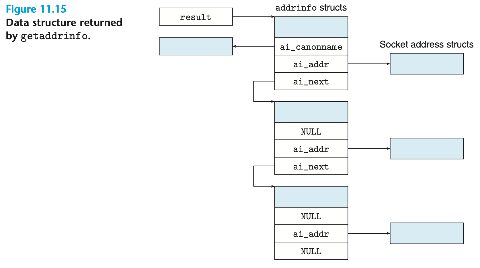 - 마지막으로, 호스트 B의 프로토콜 소프트웨어가 패킷 헤더와 프레임 헤더를 제거한다. 이후 서버가 데이터를 읽기 위해 시스템 호출을 실행하면, 프로토콜 소프트웨어는 최종적으로 결과 데이터를 서버의 가상 주소 공간으로 복사한다.