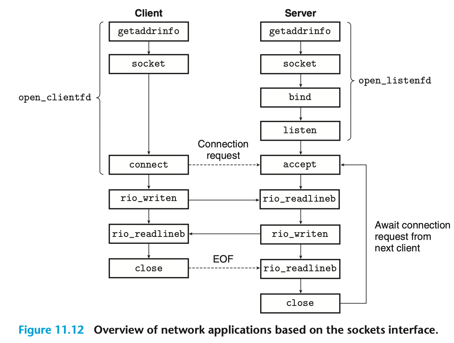 Tiny는 매우 흥미롭다. 이 프로그램은 프로세스 제어, Unix I/O, 소켓 인터페이스, 그리고 HTTP와 같이 우리가 배운 많은 아이디어를 단 250줄의 코드로 요약한다. 실제 서버가 가지는 기능성, 강인성, 보안성은 부족할지라도, 정적 콘텐츠와 동적 콘텐츠 모두를 실제 웹 브라우저에 제공할 정도로 충분히 야무지다.