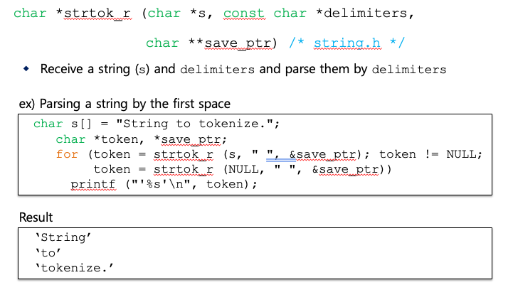 정석 라이브러리에서 제공하는 strtok_r을 보면 이해가 빠를 것.