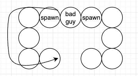 이건 레벨 디자인을 하기에 너무 적절한 주제였다. bad guy가 너무 강력하다면 spawn 위치를 훨씬 많이 배치 할 수도 있을 것이다. 아니면 차라리 겁나 끝내주는 해골모양 디자인의 스테이지를 만들 수도 있을 것이다. 미래의 누군가의 창의력을 위해 이 부분을 접근했다. 참고로 나는 기껏 생각해낸게