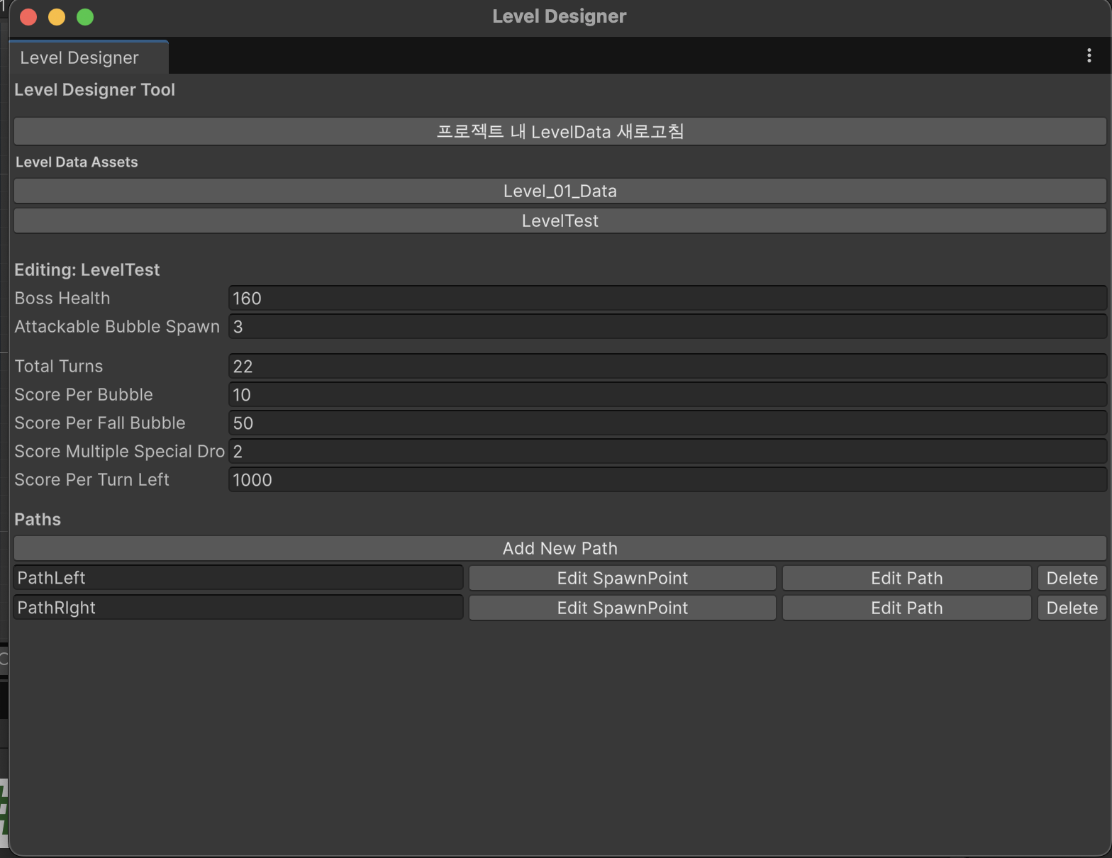 만들어진 내용은 Assets/Contents에 저장되고 게임 시작전 직렬화된 필드에 던져서 바로 시연 할 수 있게 했다.