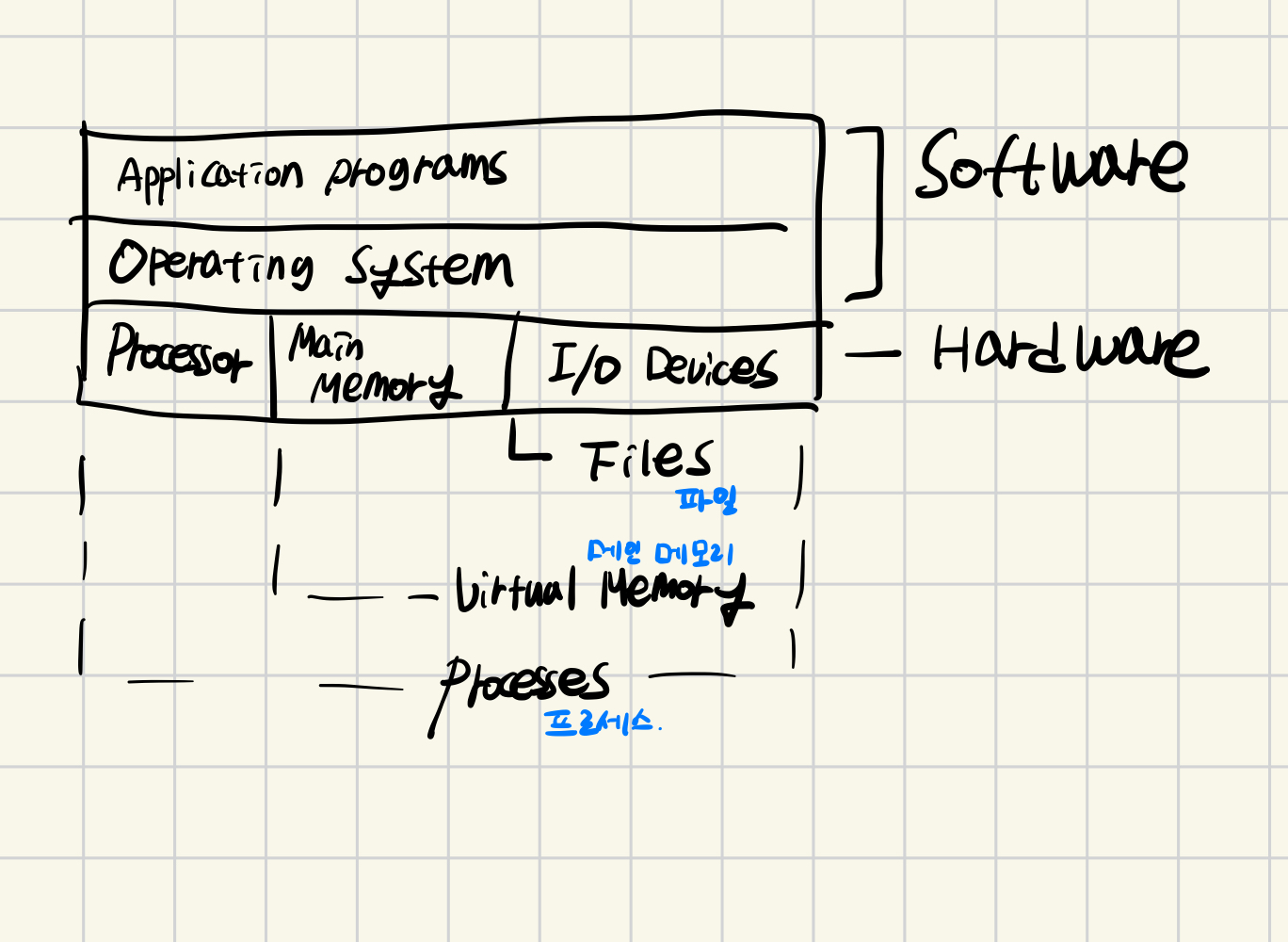 - 프로세스 : 프로세서, 메인 메모리, 입출력장치 모두의 추상화 된 결과이다.