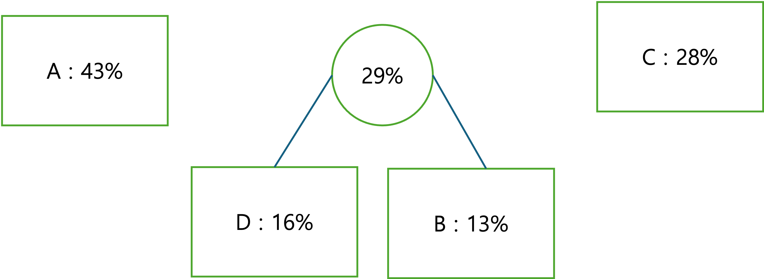| a : 43% | c : 28% | d : 16% | b : 13% |