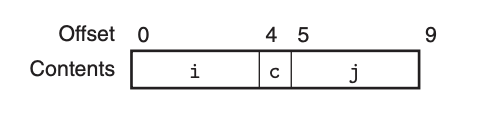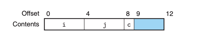 그러면, 필드 i(오프셋 0)와 j(오프셋 5) 모두에 대해 4바이트 정렬 요건을 만족시키는 것은 불가능해진다.