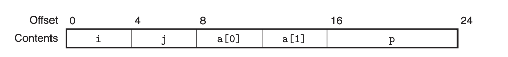 - 이것은 p→i(주소 x_p)와 p→j(주소 x_p + 8) 모두 각각의 4바이트 정렬 요건을 만족하도록 보장해준다.